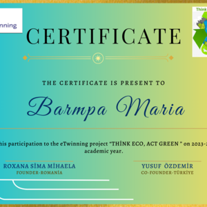 Υπεύθυνη Εκπαιδευτικός: Μπάρμπα Μαρία (ΠΕ70)