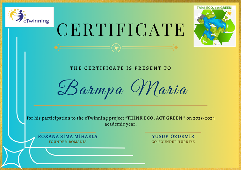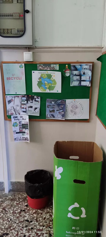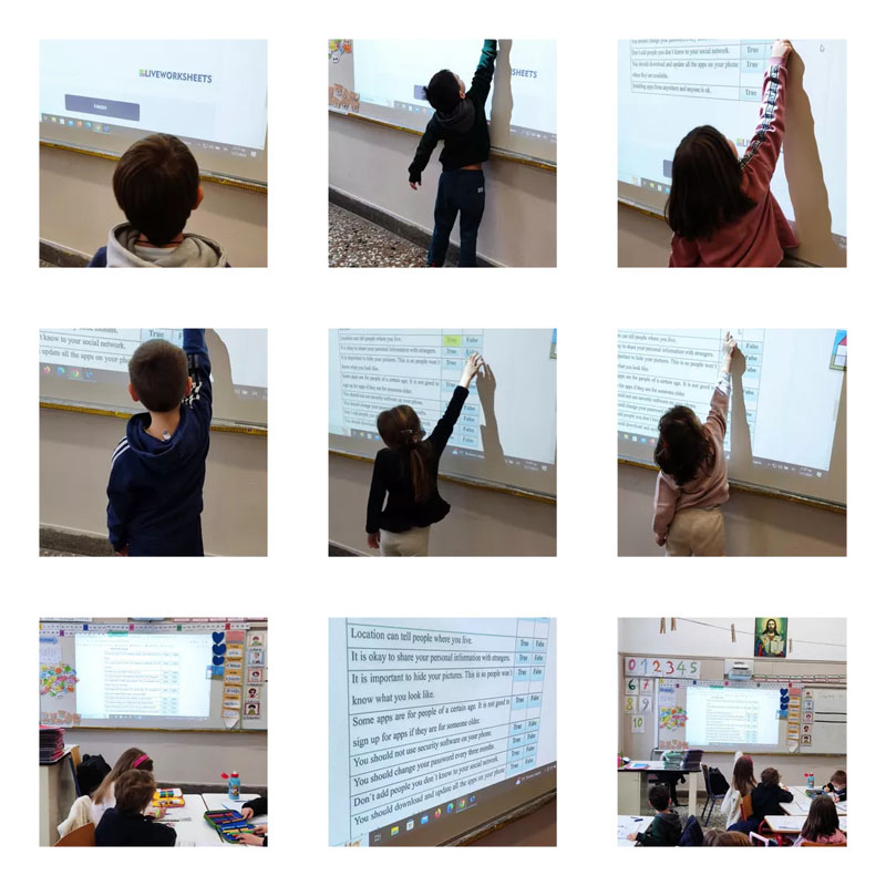 Με τη νέα χρονιά οι μαθητές και οι μαθήτριες της Α’ τάξης (σχ. έτος 2023-2024) ενημερώθηκαν για την ασφάλεια στο Διαδύκτιο καθώς τα προγράμματα eTwinning αφορούν σε ευρεία χρήση του και έπαιξαν ένα κουιζ. Σε συνέχεια των δράσεων για την ανακύκλωση υλικών και τη νέα τους χρήση, δημιούργησαν και έπαιξαν ένα επιτραπέζιο παιχνίδι από απλά ανακυκλώσιμα υλικά. Ο στόχος ήταν να περνάει η μπαλίτσα από ένα κυκλάκι που επάνω του είχε έναν αριθμό κουνώντας κατάλληλα το κουτί. Έπειτα πρόσθεταν αυτόν τον αριθμό με τον αριθμό που τύχαιναν ρίχνοντας το ζάρι. Στο πλαίσιο της ενημέρωσης για την ανακύκλωση έγινε μια κοινή παρουσίαση υλικού σε όλα τα παιδιά από όλες τις χώρες που συμμετείχαν στο πρόγραμμα και με βάση αυτό το υλικό έπαιξαν στην 3η συνάντηση με τους μαθητές από τις άλλες χώρες bingo στον διαδραστικό πίνακα. Όλες οι παραπάνω δράσεις κοινοποιήθηκαν στο υπόλοιπο σχολείο μέσω της γωνιάς του eTwinning που δημιουργήθηκε έξω από την Α’ τάξη καθώς και με την κοινή εφημερίδα όλων των χωρών.