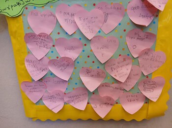 Παράλληλα ασχοληθήκαμε με θετικά συναισθήματα, δίνοντας χώρο στη χαρά, την υπερηφάνεια και την ευγνωμοσύνη. Τα παιδιά ζωγράφισαν και έγραψαν πράγματα που τους δίνουν χαρά (P), θυμήθηκαν στιγμές που τα έκαναν να νιώσουν υπερήφανα (A) και κατέγραψαν πράγματα για τα οποία νιώθουν ευγνωμοσύνη (M) . Η δραστηριότητα αυτή ενίσχυσε την αναγνώριση των προσωπικών επιτυχιών, την εκτίμηση των καθημερινών θετικών στιγμών και τη σύνδεση με τους συμμαθητές τους μέσα από το μοίρασμα εμπειριών.