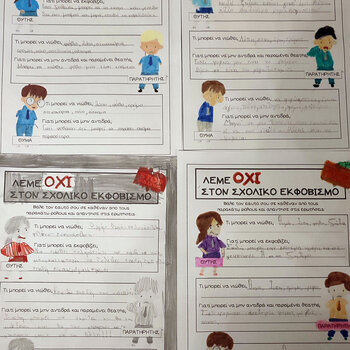 Αρχικά συζητήσαμε για το τι είναι η βία και ποιες μορφές μπορεί να πάρει. Τα παιδιά αντιλήφθηκαν ότι η βία δεν είναι μόνο σωματική, αλλά μπορεί να εκφραστεί και μέσα από λόγια ή συμπεριφορές που πληγώνουν τους άλλους. Στη συνέχεια διαβάσαμε το βιβλίο «Ο νταής του σχολικού». Μέσα από την ιστορία προσπαθήσαμε να μπούμε στη θέση όλων των εμπλεκόμενων: του θύτη, του θύματος αλλά και του παρατηρητή. Τα παιδιά εξέφρασαν τις σκέψεις και τα συναισθήματά τους και συζητήσαμε τι θα μπορούσε να κάνει ο καθένας σε μια παρόμοια κατάσταση. Έπειτα διαβάσαμε το βιβλίο «Οι λέξεις δεν είναι για να πληγώνουμε», το οποίο μας βοήθησε να κατανοήσουμε πόσο μεγάλη δύναμη έχουν τα λόγια μας και πόσο σημαντικό είναι να τα χρησιμοποιούμε με σεβασμό.