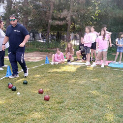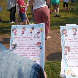 Στο πρώτο θεωρητικό μέρος, οι μαθητές/τριες είχαν την ευκαιρία να ενημερωθούν από τον κ. Ανδρέα Κωλέττη, προπονητή των Special Olympics, για τις έννοιες «ΑμεΑ» και «αναπηρία», ενώ έγινε ιδιαίτερη αναφορά στη σημασία της σωστής ορολογίας – όπως η χρήση του όρου «αναπηρικό αμαξίδιο» αντί για «καροτσάκι». Μέσα από συζήτηση και παρουσίαση, καλλιεργήθηκε η ενσυναίσθηση και ο σεβασμός στη διαφορετικότητα. Ακολούθησε το βιωματικό μέρος, όπου μαθητές/τριες της Δ΄ τάξης και παιδιά του Ειδικού Σχολείου συνεργάστηκαν σε παιχνίδια αναγνώρισης εικόνων από Παραολυμπιακά αθλήματα και αγωνίσματα των Special Olympics. Στην αυλή του σχολείου, όλοι μαζί δοκίμασαν το άθλημα bocce – ένα παιχνίδι στόχου, παρόμοιο με το πετόνγκ, που απαιτεί στρατηγική, συνεργασία και ακρίβεια. Στη συνέχεια, τραγούδησαν όλοι μαζί ένα τραγούδι για τη διαφορετικότητα με κινήσεις, στέλνοντας μήνυμα αποδοχής και συνεργασίας. Η δράση ολοκληρώθηκε με την απονομή αναμνηστικών διπλωμάτων και μεταλλίων σε όλους τους συμμετέχοντες, ως αναγνώριση της προσπάθειας και της θετικής στάσης τους.