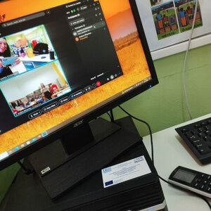 Οι μαθητές και οι μαθήτριες της Ε' τάξης των δύο συνεργαζόμενων σχολείων του Διεθνούς Θεματικού Δικτύου Εκπαίδευσης για την Αειφορία "Από τη Μυθολογία στο Διάστημα -Myth2space" (2ο Πειραματικό Δ.Σ. Ιωαννίνων & 10ο Δ.Σ. Αμαρουσίου) συνδέθηκαν σήμερα Δευτέρα 23 Δεκεμβρίου 2024 σε μία διαφορετική, εορταστική τηλεδιάσκεψη. Αντάλλαξαν ευχές για Καλά Χριστούγεννα και ακούστηκαν και από τις δύο τάξεις τα Κάλαντα. Οι μαθήτριες Στεφανία Α. και Μιράντα Τσ. έπαιξαν με το αρμόνιο και τη μελόντικα τα Κάλαντα! Η ατμόσφαιρα που δημιούργησαν οι δύο τάξεις ήταν ιδιαίτερα γιορτινή και χριστουγεννιάτικη!