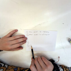 Η δράση ξεκίνησε με αναστοχασμό, καθώς κάθε μαθητής/τρια χρησιμοποίησε το «Φύλλο Αναστοχασμού Θετικών Στιγμών» για να καταγράψει μια προσωπική στιγμή χαράς, υπερηφάνειας ή ευγνωμοσύνης. Μέσα από αυτή τη διαδικασία, τα παιδιά ανακάλυψαν τη σημασία του να αναγνωρίζουμε τα όμορφα πράγματα στη ζωή μας, καλλιεργώντας την αυτογνωσία και το συναισθηματικό τους λεξιλόγιο. Στη συνέχεια, η τάξη πέρασε στο στάδιο της «Ενσυναίσθησης σε Δράση». Χρησιμοποιώντας Κάρτες Σεναρίων, τα παιδιά συμμετείχαν σε παιχνίδια ρόλων και εξασκήθηκαν στο πώς να ακούν με σεβασμό, πώς να υποστηρίζουν έναν φίλο που αγχώνεται και πώς να συμπεριλαμβάνουν στην παρέα τους κάποιον που νιώθει μόνος. Ήταν μια σπουδαία άσκηση καλοσύνης, όπου η θεωρία έγινε πράξη μέσα από την επικοινωνία και τον αλληλοσεβασμό.