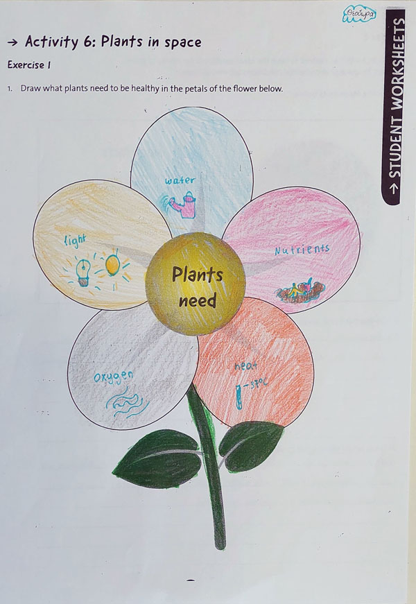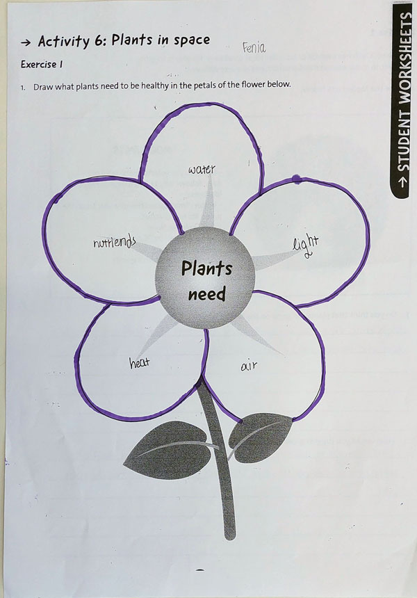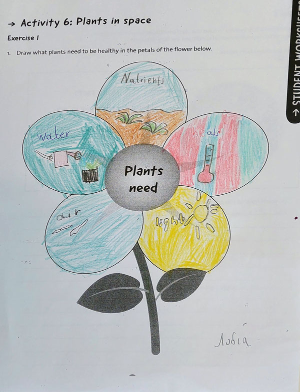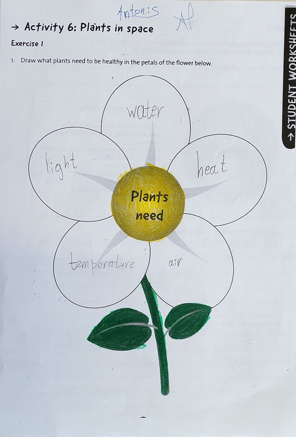 Στην πρώτη άσκηση, οι μαθητές/τριες έπρεπε να σκεφτούν ποια είναι τα βασικά στοιχεία που απαιτούνται για την υγιή ανάπτυξη των φυτών. Αυτά περιλαμβάνουν την πρόσβαση σε νερό, το φως για τη φωτοσύνθεση, το κατάλληλο έδαφος για την υποστήριξη των ριζών και την παροχή θρεπτικών συστατικών, καθώς και το οξυγόνο ή τη θερμοκρασία που επηρεάζουν τη φυσική διαδικασία της ανάπτυξης των φυτών.