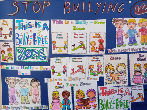 Στα πλαίσια των δράσεων κατά της σχολικής βίας (bullying) οι μικροί μαθητές και μαθήτριες του Ομίλου Αγγλικών ευαισθητοποιήθηκαν με τρόπο που ταιριάζει στην ηλικία τους πάνω σε θέματα σεβασμού και συνεργασίας μεταξύ τους, αναγνώρισης των διαφόρων μορφών εκφοβισμού και τρόπων αντιμετώπισης τυχόν φαινομένων. Τέλος δημιούργησαν το δικό τους κολάζ με θέμα "Stop Bullying".