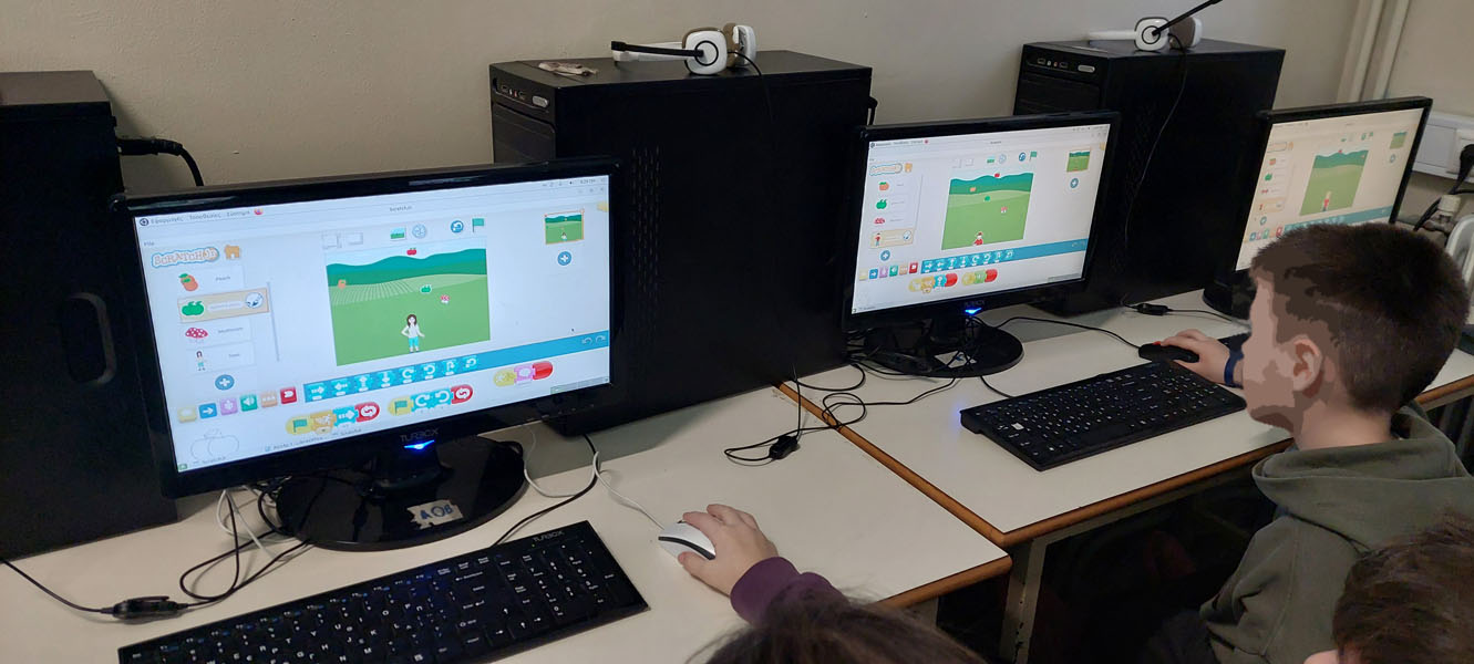 Στο μάθημα της Πληροφορικής και στο πλαίσιο της Εθνικής Δράσης κατά της Παιδικής Παχυσαρκίας, οι μαθητές και οι μαθήτριες της Γ΄ τάξης (σχ. έτος 2025-2026) συμμετείχαν σε μια δημιουργική και παιγνιώδη δραστηριότητα ψηφιακής δημιουργίας, υλοποιώντας ένα παιχνίδι στο ScratchJr με τίτλο «Υγιεινή Δράση: Μάζεψε Φρούτα». Μέσα από τη δραστηριότητα αυτή, τα παιδιά είχαν την ευκαιρία να αναπτύξουν βασικές δεξιότητες ψηφιακού γραμματισμού και αλγοριθμικής σκέψης, εξοικειώθηκαν με το προγραμματιστικό περιβάλλον του ScratchJr και καλλιέργησαν τη δημιουργικότητα και τη φαντασία τους, συνδέοντας παράλληλα την τεχνολογία με μηνύματα υγιεινής διατροφής και σωματικής δραστηριότητας.