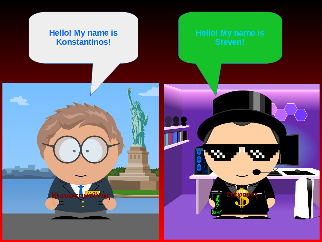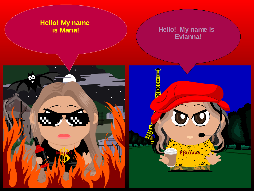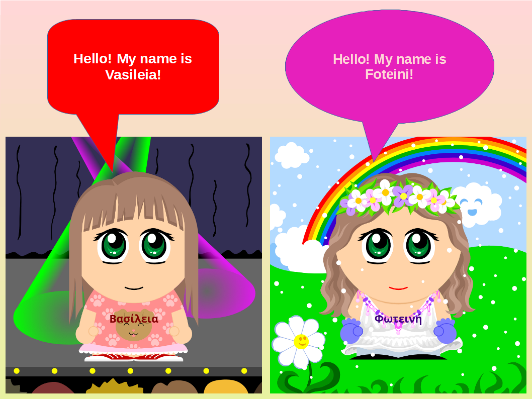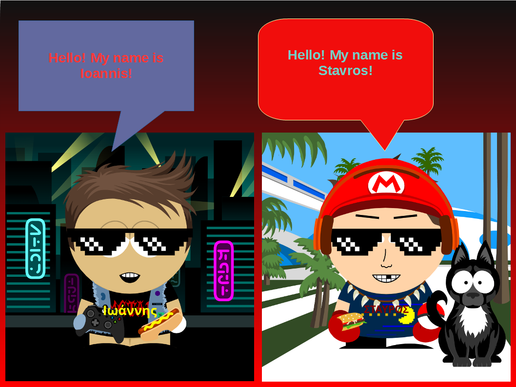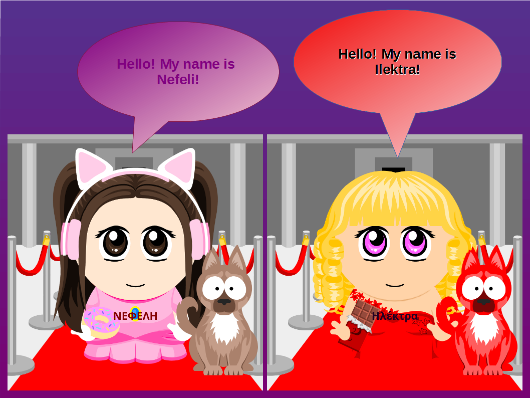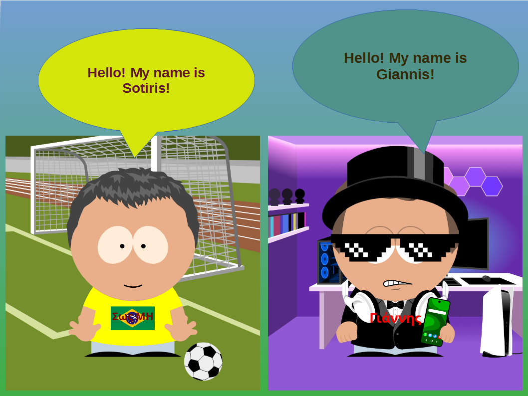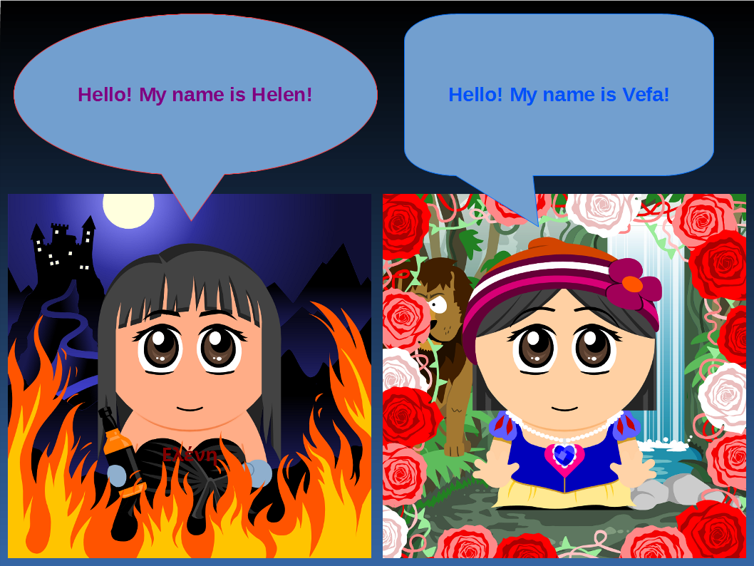 Στη συνέχεια, οι μαθητές και οι μαθήτριες εργάστηκαν σε ζευγάρια χρησιμοποιώντας το πρόγραμμα LibreOffice Impress για τη δημιουργία ψηφιακών διαφανειών. Σχεδίασαν συννεφάκια διαλόγου και πληκτρολόγησαν σύντομο κείμενο αυτοπαρουσίασης στα Αγγλικά, χρησιμοποιώντας τη φράση «Hello, my name is …». Μέσα από τη διαδικασία αυτή καλλιεργήθηκαν δεξιότητες γλωσσικής έκφρασης, ομαδοσυνεργατικής μάθησης και βασικού ψηφιακού σχεδιασμού, ενώ η δραστηριότητα είχε παιγνιώδη χαρακτήρα που ενίσχυσε το ενδιαφέρον και τη συμμετοχή όλων των παιδιών. Τα τελικά έργα αναρτήθηκαν σε κοινό ψηφιακό πίνακα του προγράμματος στην πλατφόρμα Padlet με τίτλο «Teacher and student introduction», συμβάλλοντας στη διάχυση των μαθησιακών αποτελεσμάτων και στην ενίσχυση της διαπολιτισμικής επικοινωνίας.