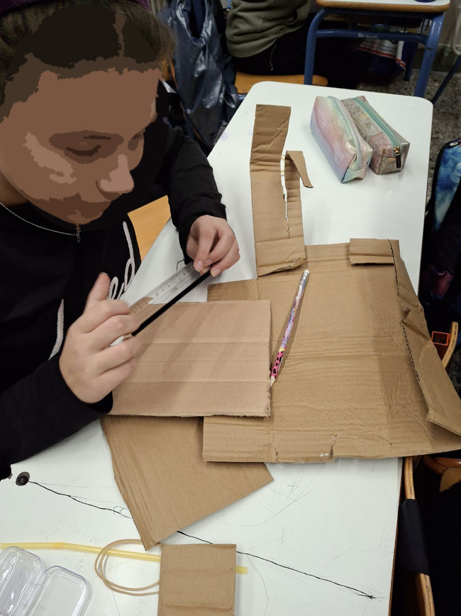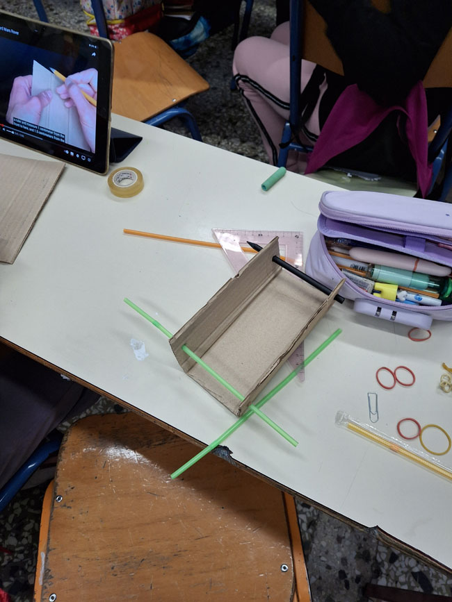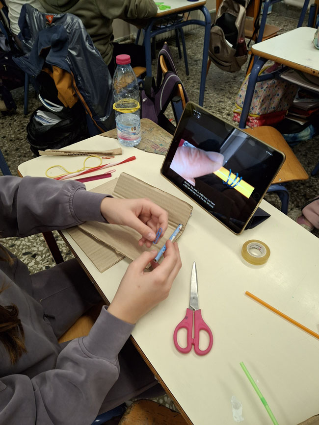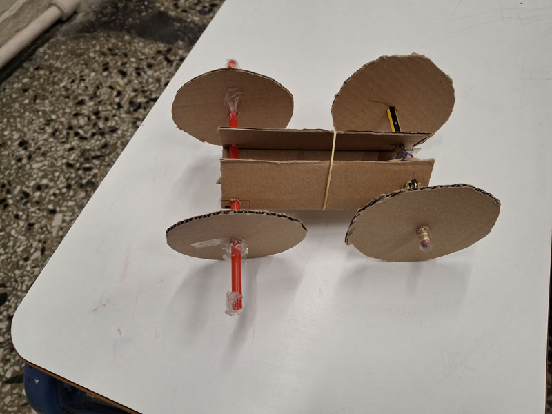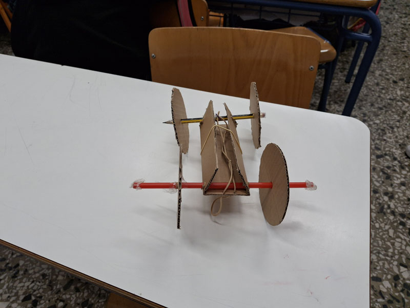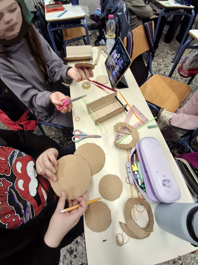 Η δραστηριότητα «Κατασκευάζω ένα Rover από χαρτόνι» εντάσσεται στο πλαίσιο ανάπτυξης δεξιοτήτων STEM. Οι μαθητές/τριες κλήθηκαν να σχεδιάσουν, να κατασκευάσουν, να δοκιμάσουν και να βελτιώσουν το rover τους, αξιοποιώντας την εμπειρική γνώση και την παρατήρηση για να ενισχύσουν την κατανόηση φυσικών εννοιών όπως η κινητική ενέργεια, η δυναμική ενέργεια και η τριβή. Εξετάζοντας πώς η ενέργεια που αποθηκεύεται στο λαστιχάκι μετατρέπεται σε κίνηση, τα παιδιά αντιλήφθηκαν τη σημασία της σχεδίασης ενός οχήματος που μπορεί να κινηθεί αποτελεσματικά σε δύσβατες επιφάνειες όπως η σεληνιακή. Πειραματίστηκαν με διαφορετικά μεγέθη τροχών και τύπους επιφανειών, συγκρίνοντας αποτελέσματα και εξάγοντας συμπεράσματα.