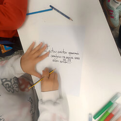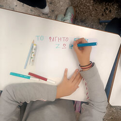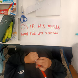 Ακολούθησε ζωντανή συζήτηση, όπου τα παιδιά συμμετείχαν ενεργά, αντάλλαξαν απόψεις, διατύπωσαν προτάσεις και εξέφρασαν ιδέες για το πώς μπορούμε όλοι να συμβάλουμε στη μείωση της σπατάλης τροφίμων στην καθημερινή μας ζωή. Στη συνέχεια, οι μαθητές/τριες δημιούργησαν ένα μήνυμα – σύνθημα για τη σπατάλη τροφίμων, το οποίο αποτύπωσε με όμορφο και δημιουργικό τρόπο το πνεύμα της δράσης. Η δραστηριότητα θα ολοκληρωθεί με την ενημέρωση των συμμαθητών τους από τα υπόλοιπα σχολεία της Ακαδημίας, μέσα από υλικό που θα δημιουργήσουν οι ίδιοι οι μαθητές της τάξης μας — προβάλλοντας έτσι τη σημασία της ευαισθητοποίησης, της συνεργασίας και της συλλογικής δράσης.