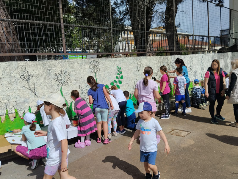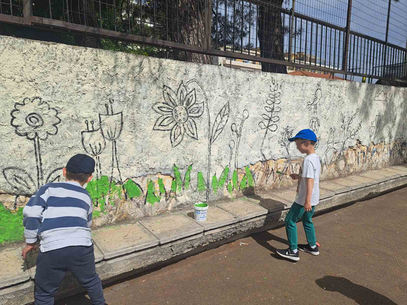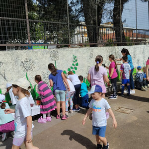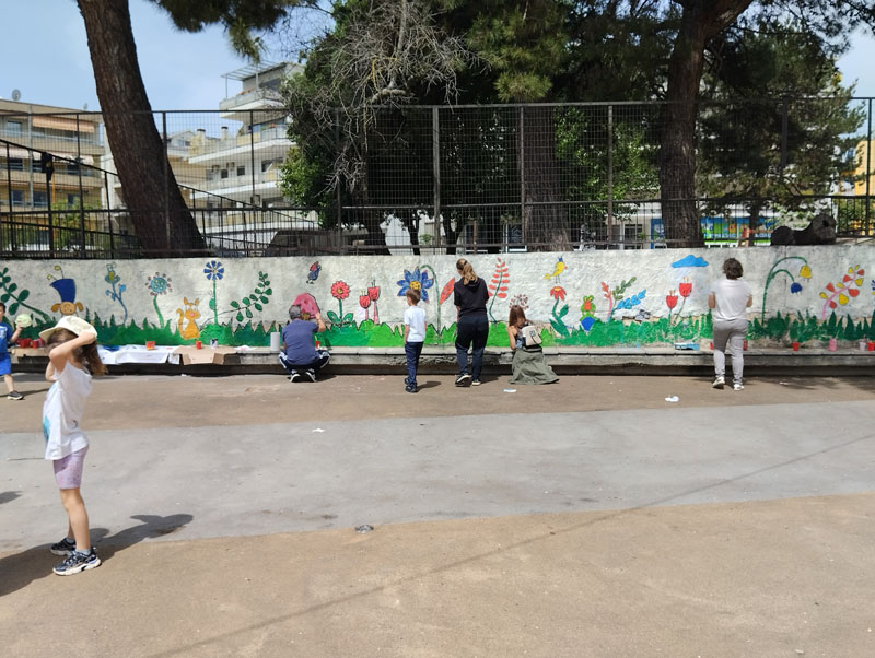 Το Σάββατο 24 Μαΐου 2025 η αυλή μας γέμισε χρώματα και χαρούμενες φωνές. Οι μαθητές/τριες των Β' και Γ' τάξεων και οι γονείς τους ανταποκρίθηκαν στην πρόσκληση του σχολείου μας, φέρνοντας τα πινέλα τους και την καλή τους διάθεση, με σκοπό να δώσουμε χρώμα σε έναν μουντό και άχαρο τοίχο της αυλής. Μικροί και μεγάλοι, λοιπόν, ανέλαβαν δράση. Ανακάτεψαν χρώματα, έφτιαξαν νέες αποχρώσεις, ενεργοποίησαν τη φαντασία και τη δημιουργικότητά τους, έμαθαν να κρατούν το πινέλο και να το χρησιμοποιούν σωστά, έκαναν λάθη και βρήκαν τρόπους να τα διορθώσουν. Μα το πιο σημαντικό από όλα είναι ότι συνεργάστηκαν για να δώσουν το πιο όμορφο αποτέλεσμα. Και τα κατάφεραν!