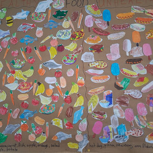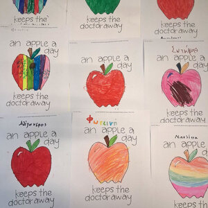 Η δράση εμπλουτίστηκε και από το μάθημα των Αγγλικών, σε συνεργασία με τη δασκάλα των Αγγλικών. Οι μαθητές συζήτησαν στα Αγγλικά για την υγιεινή διατροφή, δημιούργησαν κολάζ με υγιεινά και μη υγιεινά τρόφιμα και ζωγράφισαν το δικό τους «healthy plate», δίνοντας έμφαση στη φράση “An apple a day keeps the doctor away”. Επιπλέον, έμαθαν και τραγούδησαν σχετικά τραγούδια όπως Happy Fruits και I like to eat apples and bananas, συνδέοντας τη μάθηση της γλώσσας με την προαγωγή υγιεινών επιλογών. Η δράση ολοκληρώθηκε με ιδιαίτερο ενθουσιασμό από τα παιδιά, προσφέροντάς τους πολύτιμες γνώσεις και μια όμορφη εμπειρία που συνέβαλε ουσιαστικά στην προώθηση της υγείας και της ευεξίας στο σχολικό περιβάλλον.
