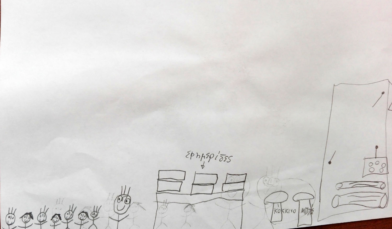 Οι μικροί μαθητές ενθουσιάστηκαν από τη μοναδική ευκαιρία που τους παρουσιάστηκε και έσπευσαν να την αποτυπώσουν σε ζωγραφιές τους.