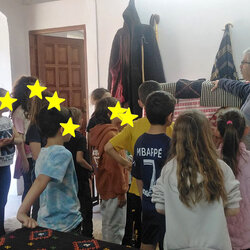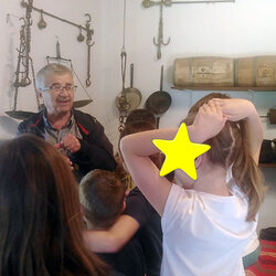 Τέλος, ακούσαμε τα κάλαντα του Λαζάρου από τον κ. Γιάννη Φερεντίνο που μας περιήγησε στα εκθέματα του μουσείου, μας άφησε να τα αγγίξουμε και να τα πάρουμε στα χέρια μας. Ιδιαίτερη χαρά πήραμε εμείς τα παιδιά βλέποντας το καλαθάκι που τα παιδιά στα παλιά χρόνια στόλιζαν με βάγια και λουλούδια για να μαζεύουν τα αυγά του Πάσχα λέγοντας τα κάλαντα με τη συνοδεία μεγάλων χάλκινων κουδουνιών. Ενθουσιαστήκαμε που ακούσαμε για το έθιμο των καλάντων του Λαζάρου το οποίο είχαμε συζητήσει και στο μάθημα των Θρησκευτικών.