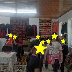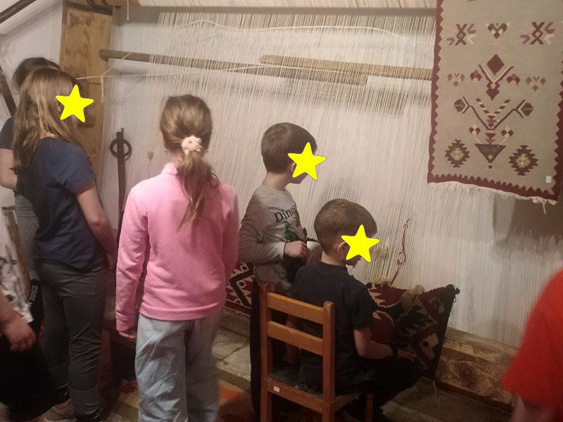 Οι μαθητές/τριες της Γ΄τάξης περιηγηθήκαμε κυρίως στην πρώτη και τη δεύτερη ενότητα εκθεμάτων που έχουν να κάνουν με την παραγωγή των αγαθών (αντικείμενα και εργαλεία που χρησιμοποιούνταν στη γεωργία, την κτηνοτροφία, τη μελισσοκομία και τις οικοδομικές εργασίες) και την επεξεργασία και τη μεταποίηση των πρώτων υλών (αντικείμενα σχετικά με την κλωστοϋφαντική τέχνη και ενδυμασία) αντίστοιχα. Μάθαμε πώς η πρώτη ύλη του μαλλιού μετετρέπονταν σε ενδύματα και κλινοσκεπάσματα. Το σημαντικότερο όμως είναι ότι μέσα από την εξερεύνηση των υφαντών και των γεωμετρικών μοτίβων, ανακαλύψαμε την πλούσια κληρονομιά και την τέχνη των παραδοσιακών υφαντών, είδαμε από κοντά τα γεωμετρικά μοτίβα που χρησιμοποιούνταν και έδιναν στα υφάσματα μια μοναδική ταυτότητα και ομορφιά (γραμμές, κύκλους, τρίγωνα, τετράγωνα και άλλα γεωμετρικά σχήματα που επαναλαμβάνονται σε ολόκληρο το ύφασμα), ενώ συνειδητοποιήσαμε πως η εφαρμογή αυτών των μοτίβων μπορεί να απαιτεί τη χρήση μαθηματικών αρχών όπως η συμμετρία ή οι ακριβείς μαθηματικοί υπολογισμοί. Επιπλέον, συνδυάσαμε τις γνώσεις που είχαμε σχετικά με τη ζύγιση και τον υπολογισμό του βάρους από τα Μαθηματικά, βλέποντας παραδοσιακές ζυγαριές όπως η ζυγαριά του μπακάλη και το καντάρι και τη χρήση τους στην καθημερινή ζωή των ανθρώπων των παραδοσιακών κοινοτήτων.