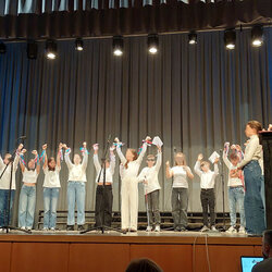 Με τη συμμετοχή των μαθητών/τριών της ΣΤ' τάξης του Σχολείου μας πραγματοποιήθηκε την Τετάρτη 5 Νοεμβρίου 2025 η επετειακή εκδήλωση για τον εορτασμό της Ευρωπαϊκής Ημέρας Γλωσσών, η οποία διοργανώθηκε από την ΠΕΔΙΕΚ Ηπείρου σε συνεργασία με την Περιφερειακη Επόπτρια Ποιότητας Εκπ/σης και τους συμβούλους εκπ/σης Ξένων Γλωσσών και Μουσικής. Μέσα από λόγο, μουσική και χρώμα, παρουσιάστηκαν οι γλώσσες του κόσμου — ελληνικά, γαλλικά, αγγλικά, αλλά και γλώσσες όπως η νοηματική και ο κώδικας Braille. Κάθε ομάδα παιδιών έδωσε φωνή σε μια γλώσσα, αποκαλύπτοντας τη δύναμη της επικοινωνίας, της αγάπης και του σεβασμού. Όλες οι φωνές, όλες οι ψυχές έχουν θέση στον ίδιο κύκλο, υφαίνοντας έτσι έναν ύμνο στην ενότητα, την αποδοχή και την ανθρώπινη επικοινωνία. Για την υποστήριξη της παραπάνω δράσης πρέπει να αναφέρουμε την πολύτιμη συνεισφορά της κ. Λουκίας Χρυσάφη από τη Μονάδα Ισότιμης Πρόσβασης για φοιτητές με αναπηρίες και Ειδικές Εκπαιδευτικές Ανάγκες, για τη μεταγραφή κειμένων σε μορφή Braille καθώς και την έμπρακτη υποστήριξη από την κ. Βασιλεία – Νίτσα Γουδέλη για το λευκό μπαστούνι που παραχωρήθηκε στα πλαίσια της εκδήλωσης.